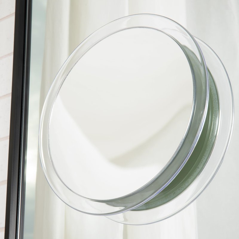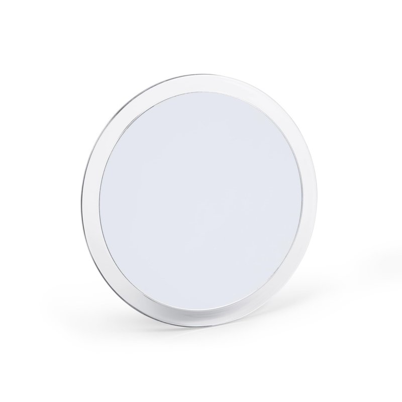 - SPECIFICATIONS - This portable mirror has a 9-inch diameter and 5X magnification. The white finish mirror was designed with 3 suction cups on the back, allowing for easy use.