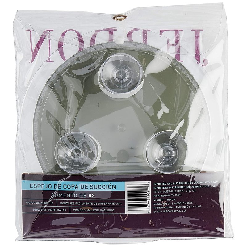 Jerdon Clear Portable Makeup Mirror - 9-Inch Diameter Makeup Mirror with Suction Cups and Vinyl Travel Case - 5X Magnification - JSC5