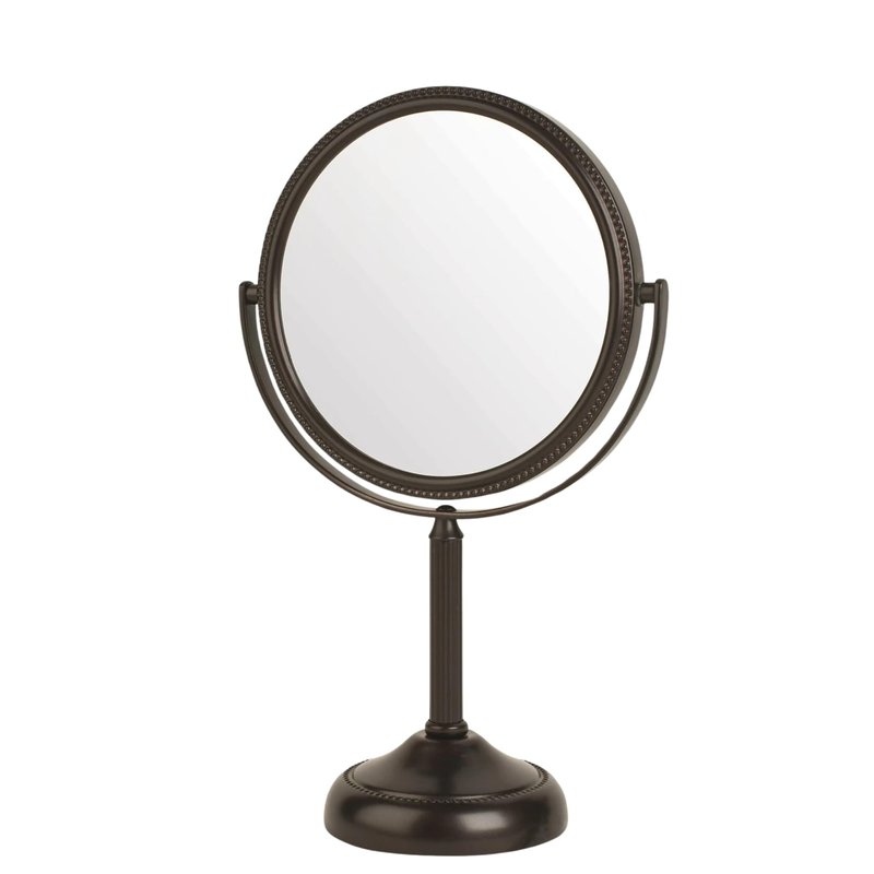 - TABLETOP VANITY MIRROR - This sleek, round mirror looks stunning on any vanity or bathroom counter. The modern, bronze finish base matches a variety of home styles and aesthetics. This tabletop mirror is great for getting ready, especially for styling hair and applying makeup. The magnification offers a close-up view, allowing you to see every detail and perfect your look!