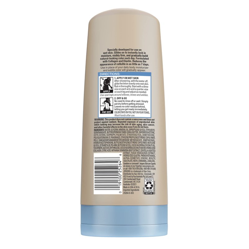- ACHIEVE HEALTHY-LOOKING SKIN - With antioxidants and Vitamin E and collagen, Jergens Natural FIRMING In-shower lotion features a blend of nutrients to boost moisturization for healthier-looking skin