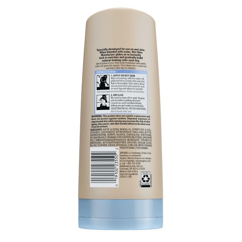 - SUNLESS TANNING LOTION - Our Jergens Natural Glow Wet Skin Moisturizer will gradually enhance and deepen your natural skin tone to provide hassle-free, streak-free color