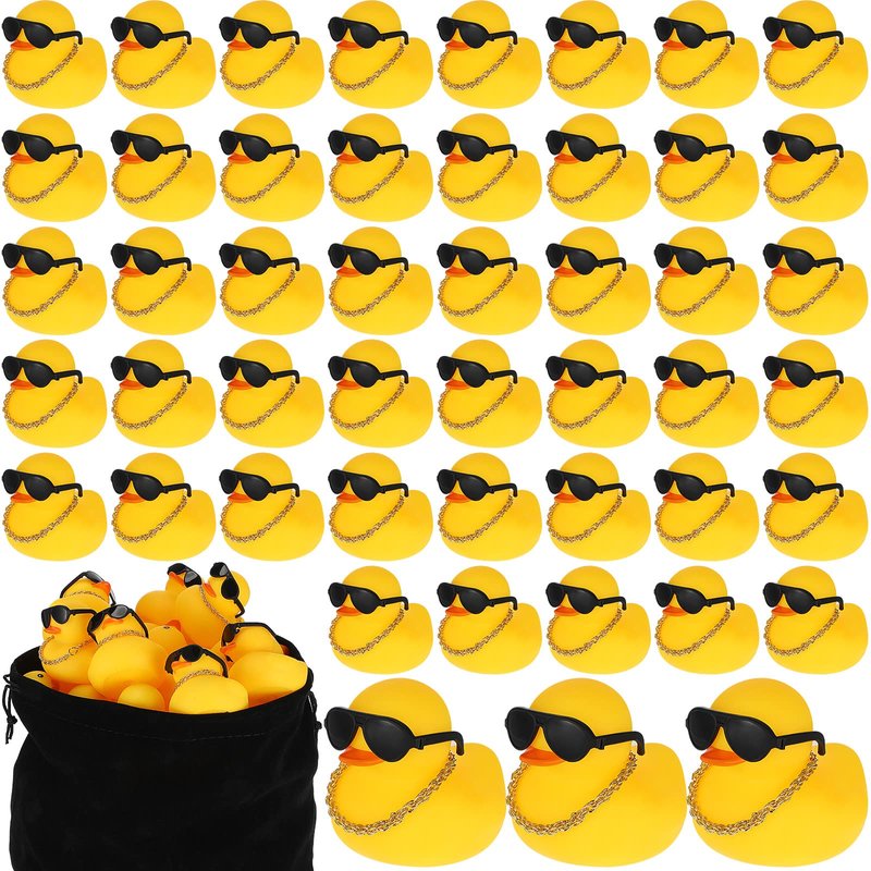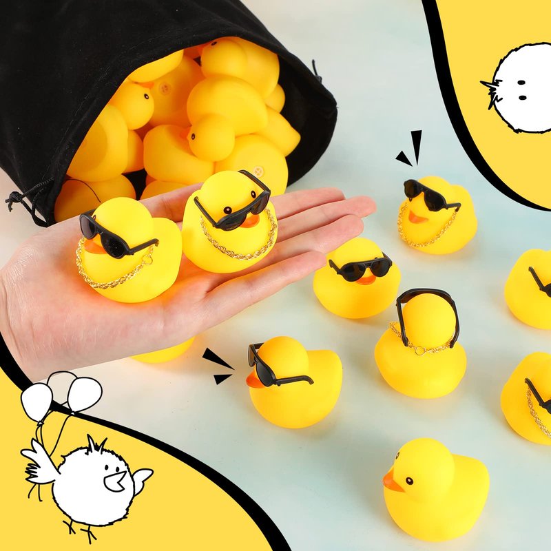 - Sunglasses Rubber Duck Set: you will receive 48 yellow rubber ducks, with 48 pairs of mini sunglasses and 48 mini necklaces, these accessories are separated, you can combine them according to your preferences; The quantity meets your various needs, and there is also a storage bag for easy storage without taking up space