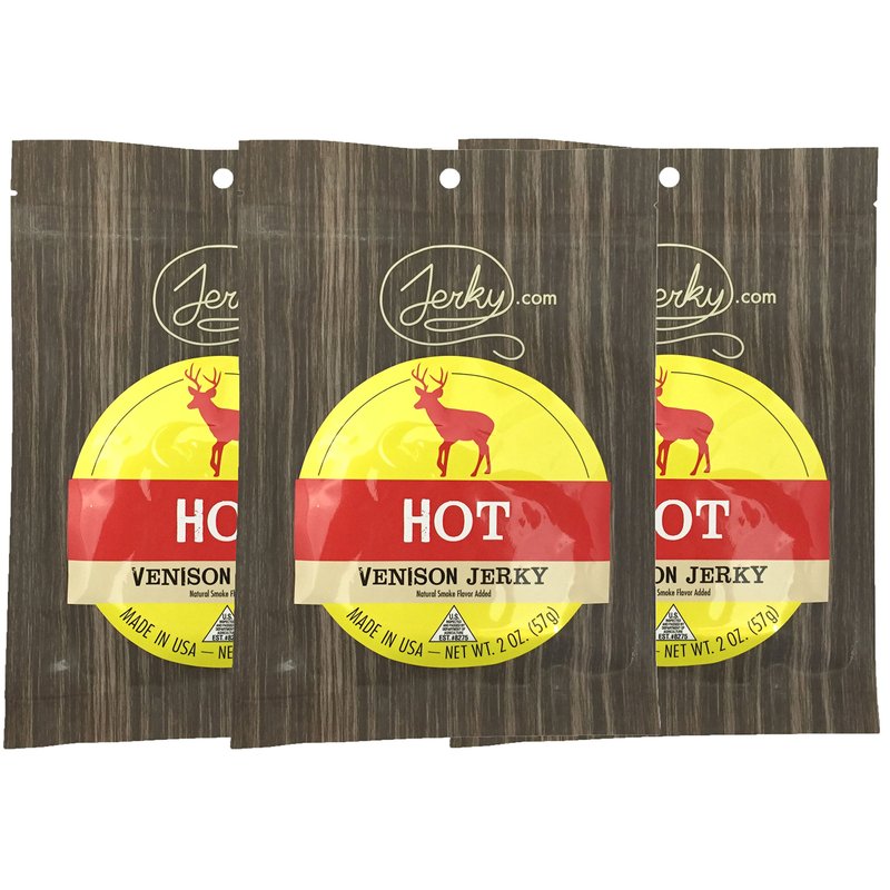 - Includes 3 - 1.75 oz. bags of All-Natural Hot Venison Jerky