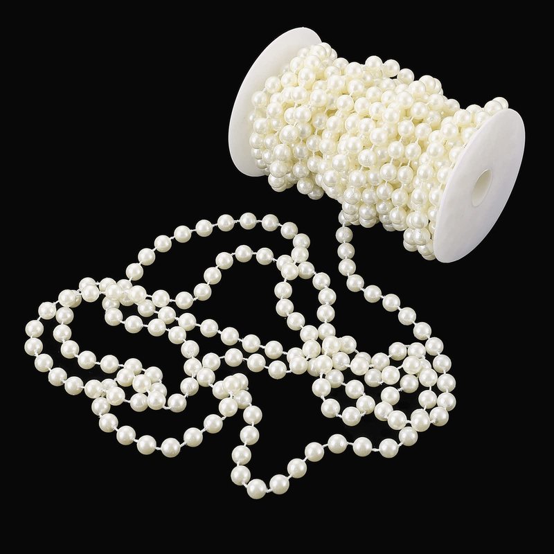 Jerler Pearl Garland 11 Yards/33Feet Artificial Pearl Bead Chain Trim Strands Roll, Ideal for DIY Crafts, Christmas, Wedding, Bouquet and Party Decoration (10mm-Ivory)