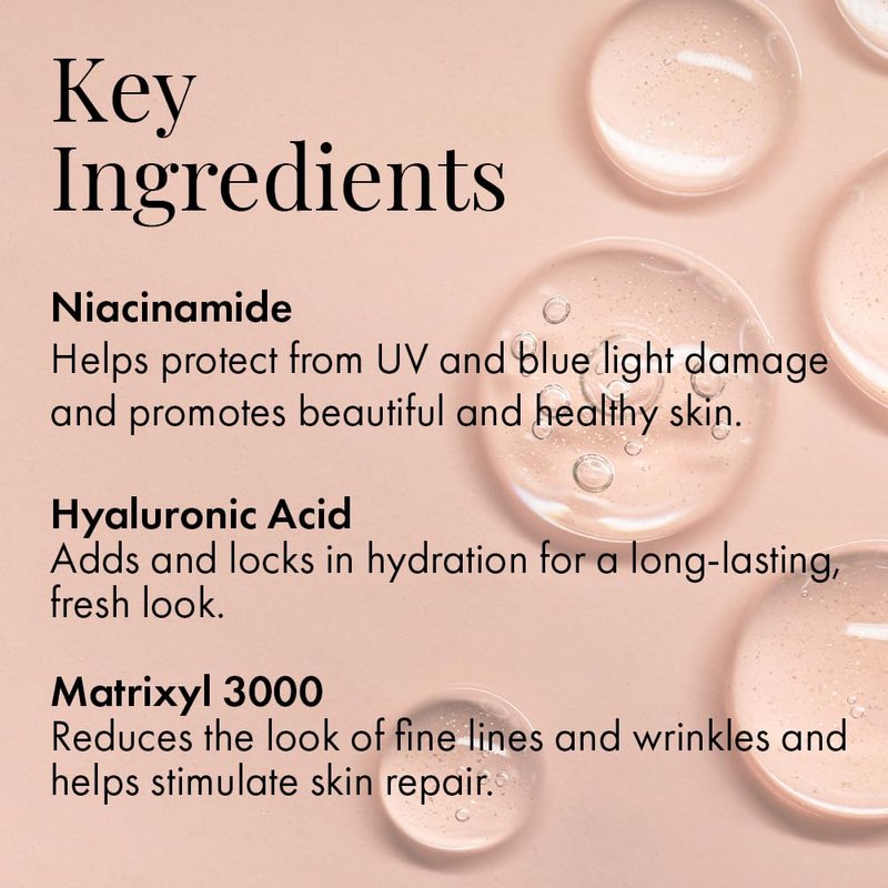 Hyaluronic Acid locks in moisture and keeps your makeup looking fresh all day long