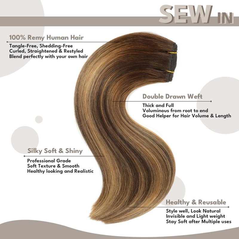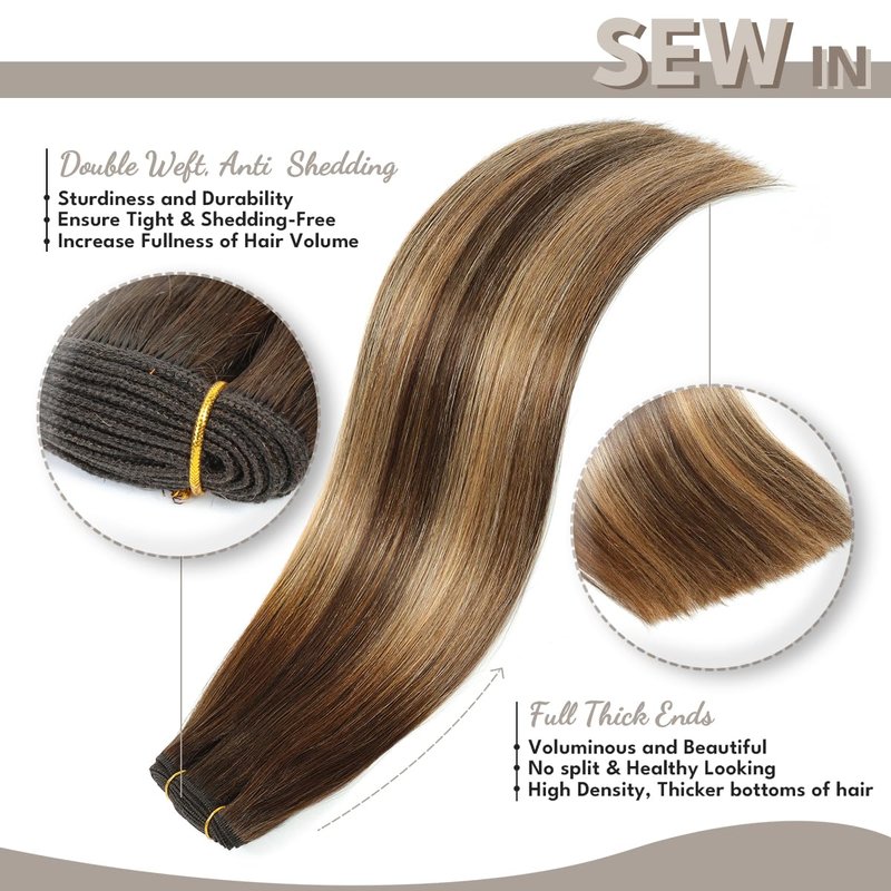 - 【Double Weft &Anti-Shedding Craftsmanship】Jerriess Sew in hair extensions adopted Anti-shedding Double Weft craftsmanship, two wefts sewing together to hold hair more stably. The double weft process not only offers sturdiness and durability which make Human Hair weft extensions tight &shedding free, also created with fullness of hair volume. It's Good Helper for Hair Volume and Length, You can get ideal Length and Volume with Weft Hair extensions.