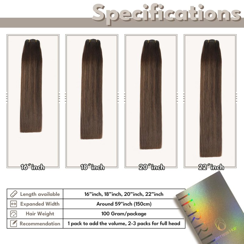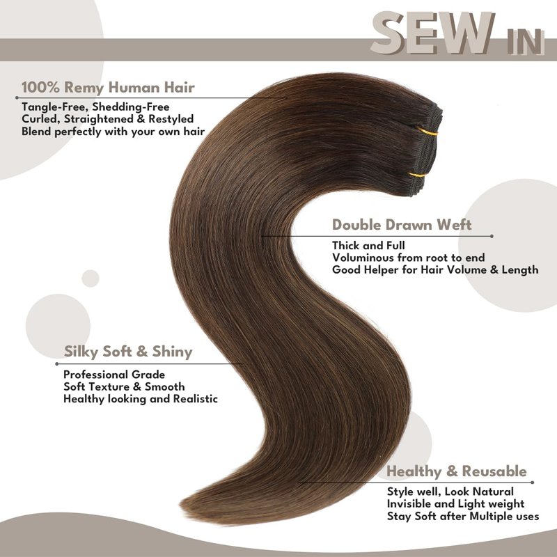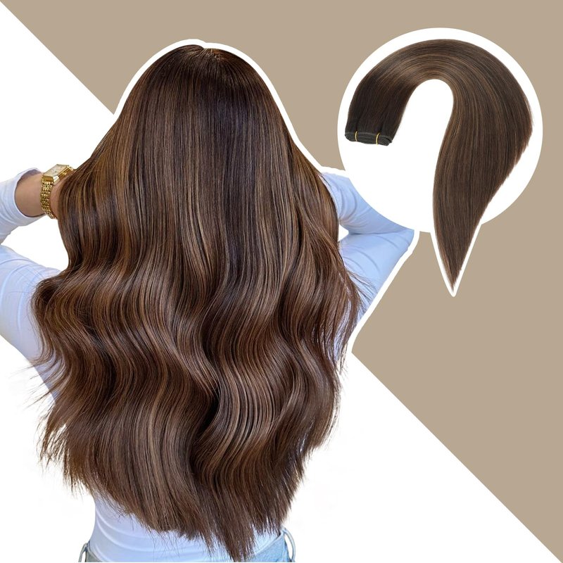Jerriess Sew in Hair Extensions Real Human hair, Double Drawn Weft Hair Extensions human hair, Silky Soft &Shiny Human hair extensions sew in, 100g Balayage Dark Brown to Chestnut Brown, 16 inch