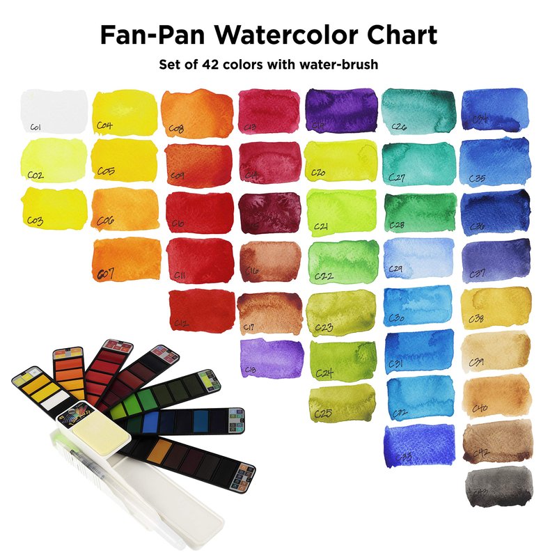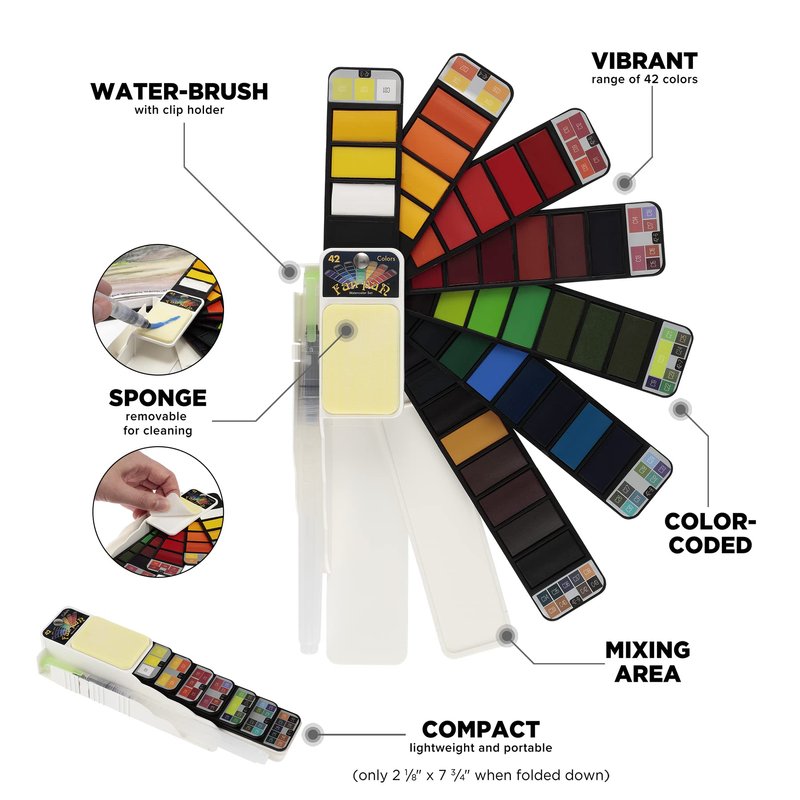 - The Watercolor set measures 2-1/8" x 7-3/4" when folded down, Watercolor brush incuded; 90 day warranty