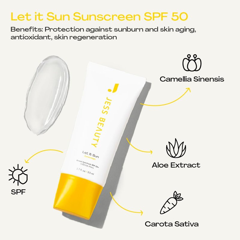 Jess Beauty Let it Sun 50+ Sunscreen, Green Tea & Aloe Extract, 1.7 fl oz