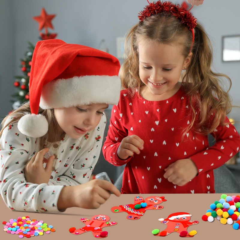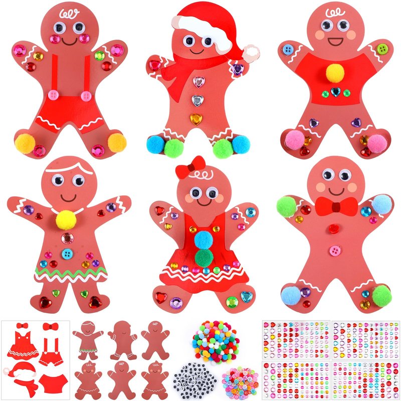 - Gingerbread Man Craft DIY Kit: you will receive 30 sets of gingerbread man craft kits in 6 styles, measuring about 3.5*5.1 inches/ 9*13cm, 120 colorful pompoms, and 4 sheets of gem stickers, 100 colorful buttons and 40 sets eyes; Sufficient quantities and diverse styles can meet your Christmas crafting needs, and you can share them with friends and classmates for DIY