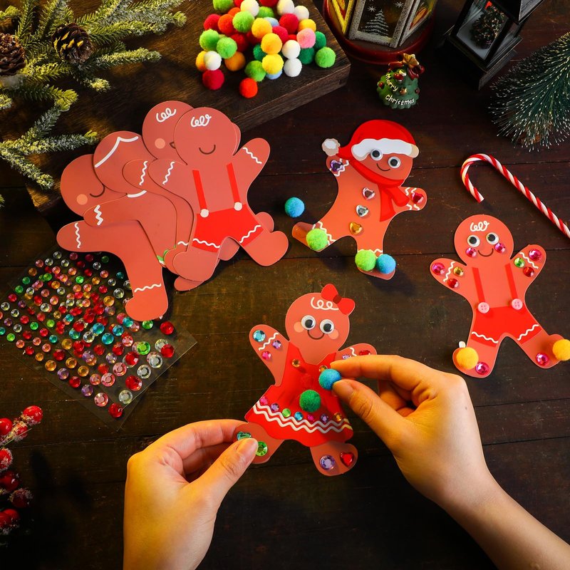 - Quality Material: the Christmas gingerbread man DIY craft kits are colorful printed and made of quality 250g coated paper, which is sturdy and reliable, not easy to break or tear, the bling gem stickers are made of quality acrylic, shiny and attractive, and the pompoms balls are made of polypropylene, they are not easy to deform with soft surfaces, can be applied as decorations for a long time