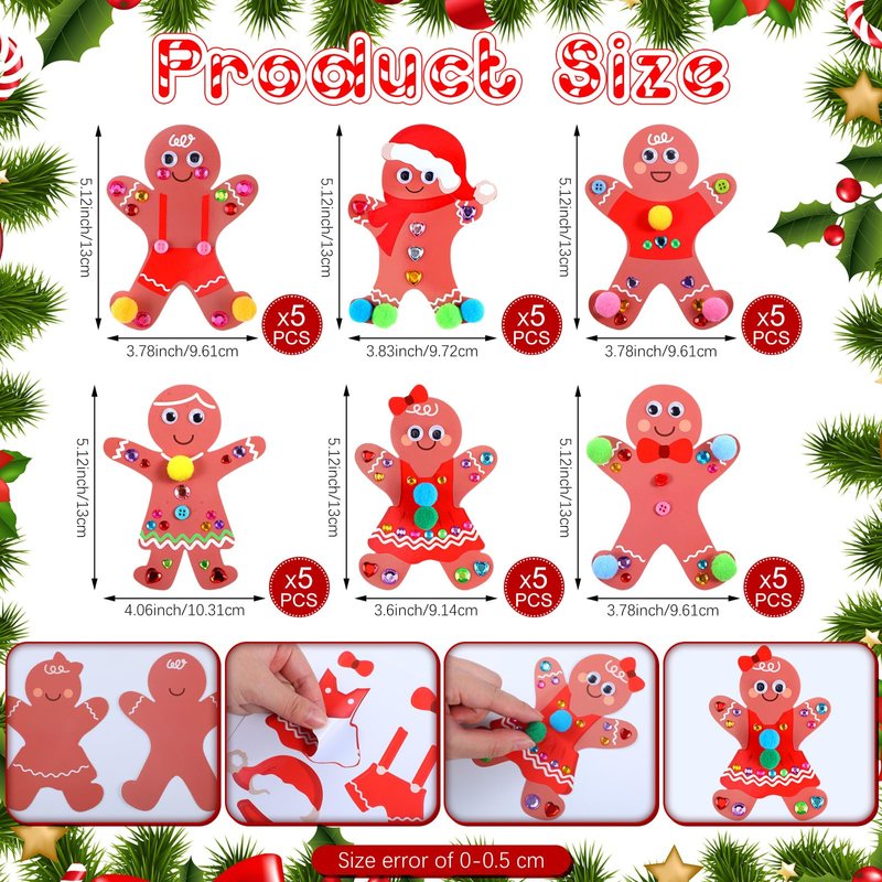 - Enjoy DIY Time: making gingerbread man crafts with your family before the holiday and get ready for the fun time; While enjoying the crafts, DIY can also bring you a sense of achievement, improve your aesthetic sense, develop concentration and patience in reward