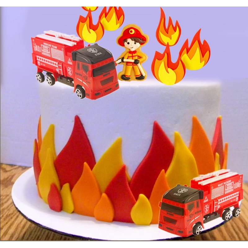 - 【Package Included】2 x Fire Truck Toy, 1 x Firemen Topper,6 x "Fire" Cupcake Topper. Size as the picture shows.