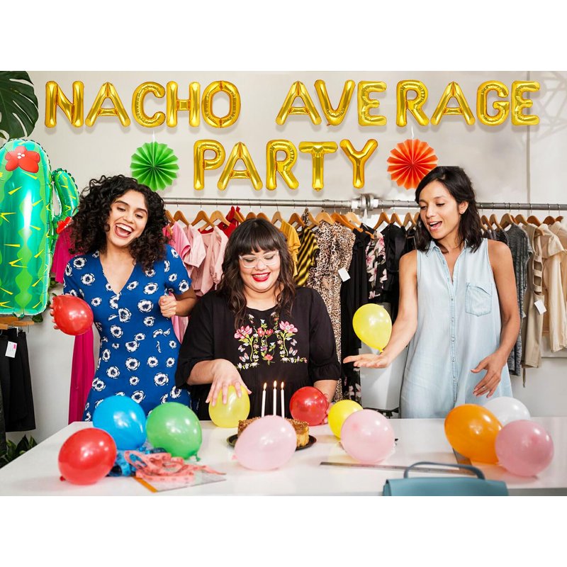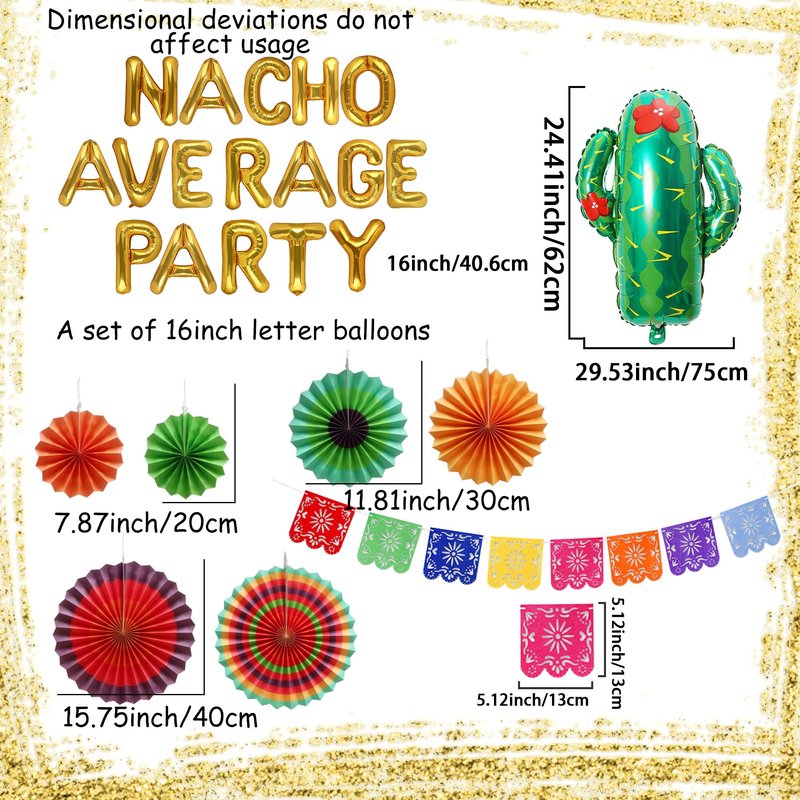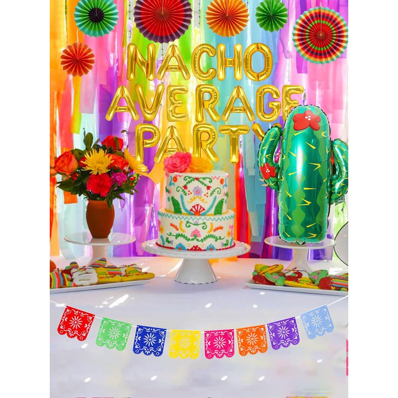 - What you will receive: 1 x Nacho Average Party letter balloons 16 inch,1 x 6 colors paper fans, 1 x banner, 1 x taco balloon, 1 x cactus balloon