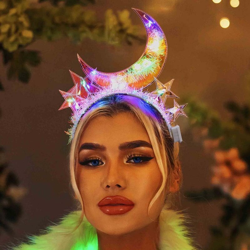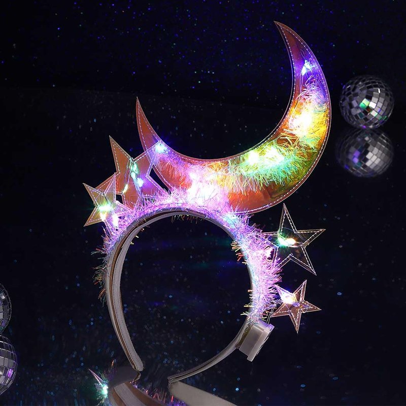 - Flash hair bands are a whimsical accessory that features charming star and moon shapes,emit a soft and magical glow, creating a captivating and dreamy atmosphere.