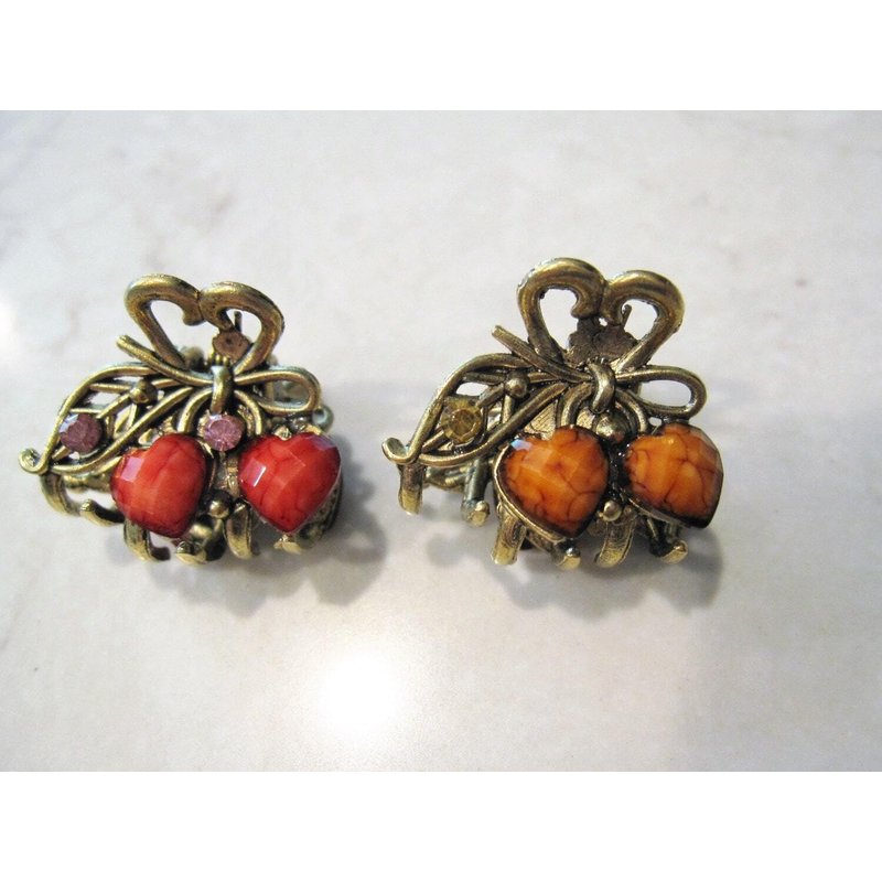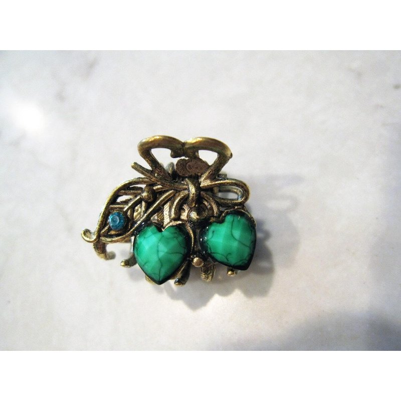 Jeweled antique bronze hair claw clip with crystals Set: B (Primary color: Green)
