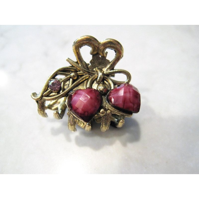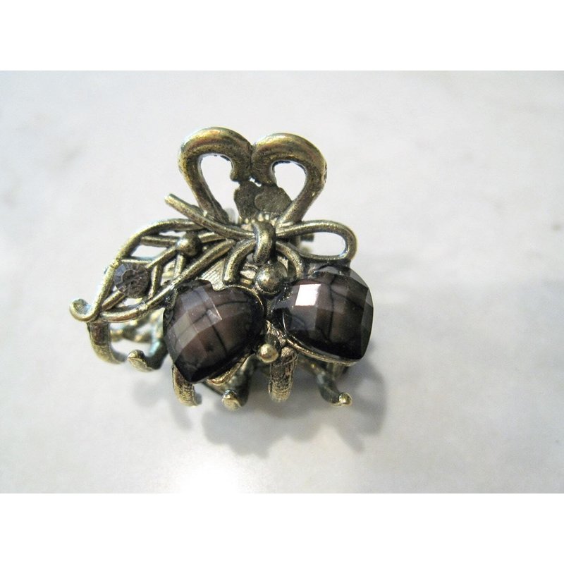 This pretty metal hair clip has an antique look with jewels and crystal accents.