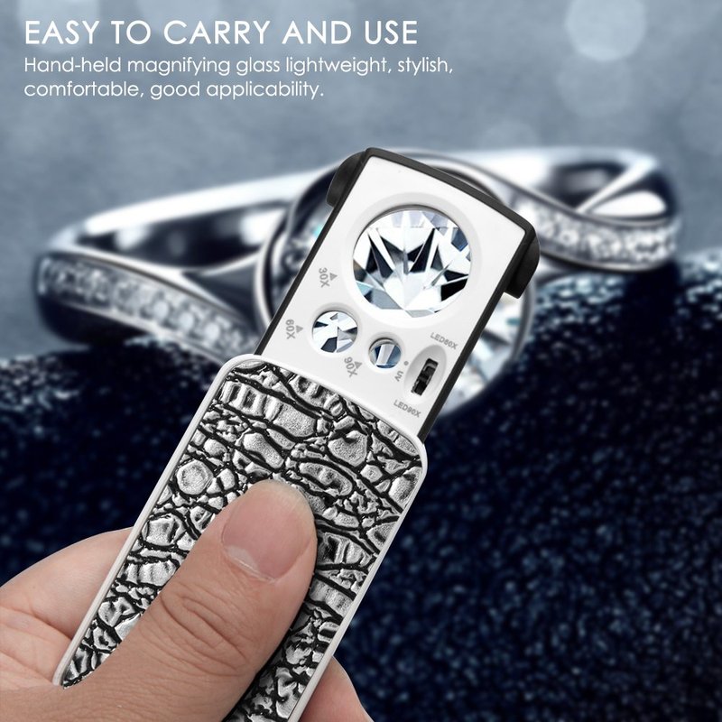 - FOLDABLE DESIGN: Just slide out the Jewelry Magnifier, the light turns on automatically, put back it turns off then.