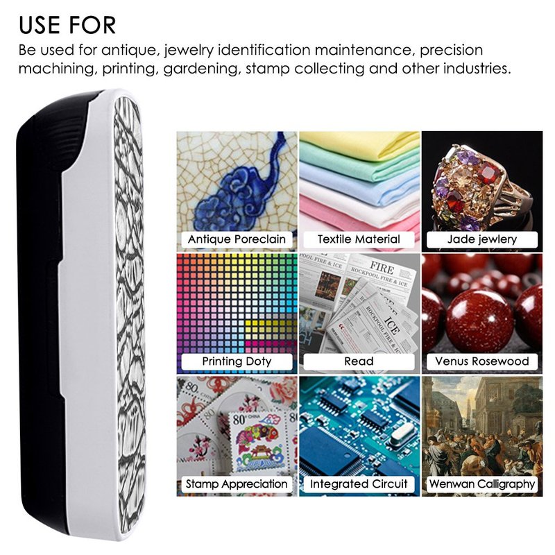 - FUNCTION: This Jewelry Loupe Magnifier used for antique, jewelry identification, electronic maintenance, precision machining, printing, gardening, stamp collecting and other industries.