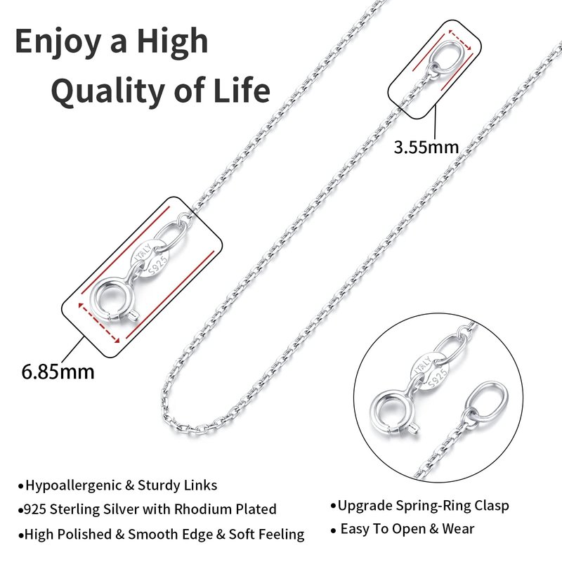 - Hypoallergenic & Comfortable Silver Chain: This sterling silver chain adopts the highest quality 925 Sterling Silver with Rhodium plated. All of the materials we used are Hypoallergenic, Lead and Nickel Free. Suitable for all kinds of skin even sensitive, so you can be assured to wear this silver chain every day.