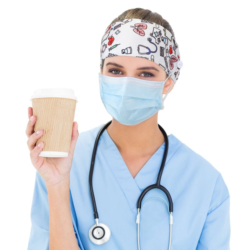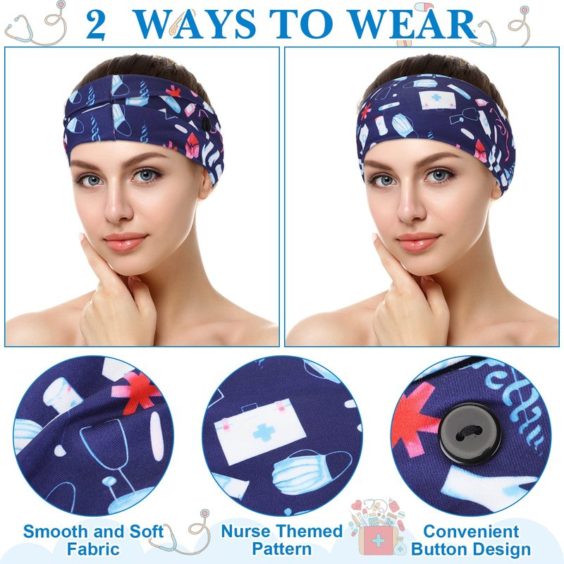 - Button Designed: there is a button on both sides of the nursing headbands, applied to hang your mask, which can relieve the earache problems of wearing masks for a long time, suitable for nurses, dentists and other relative workers