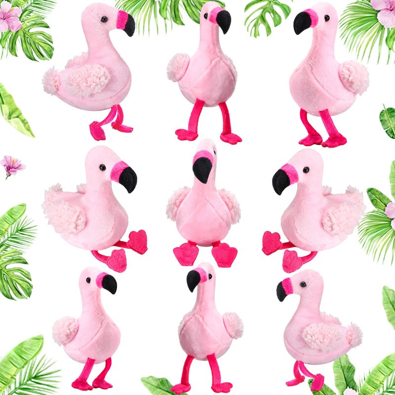 Jexine 9 Pieces Mini Stuffed Plush Toys Plush Stuffed Doll Cute Small Stuffed Animal Toy Hanging Ornaments Party Supplies Favors for Gifts Hawaiian Summer Beach Luau Party 5 Inch(Flamingo)