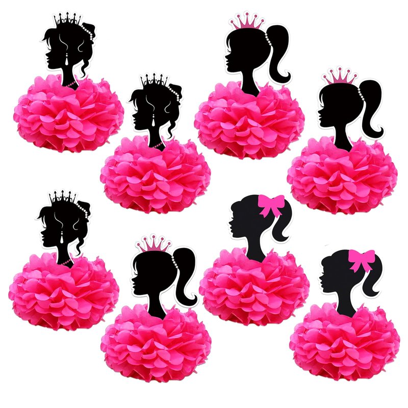JEZOMONY Girl Birthday Party Decorations Supplies, 8 PCS Centerpieces for Girl Princess Theme, Birthday Table Decorations Paper Flowers