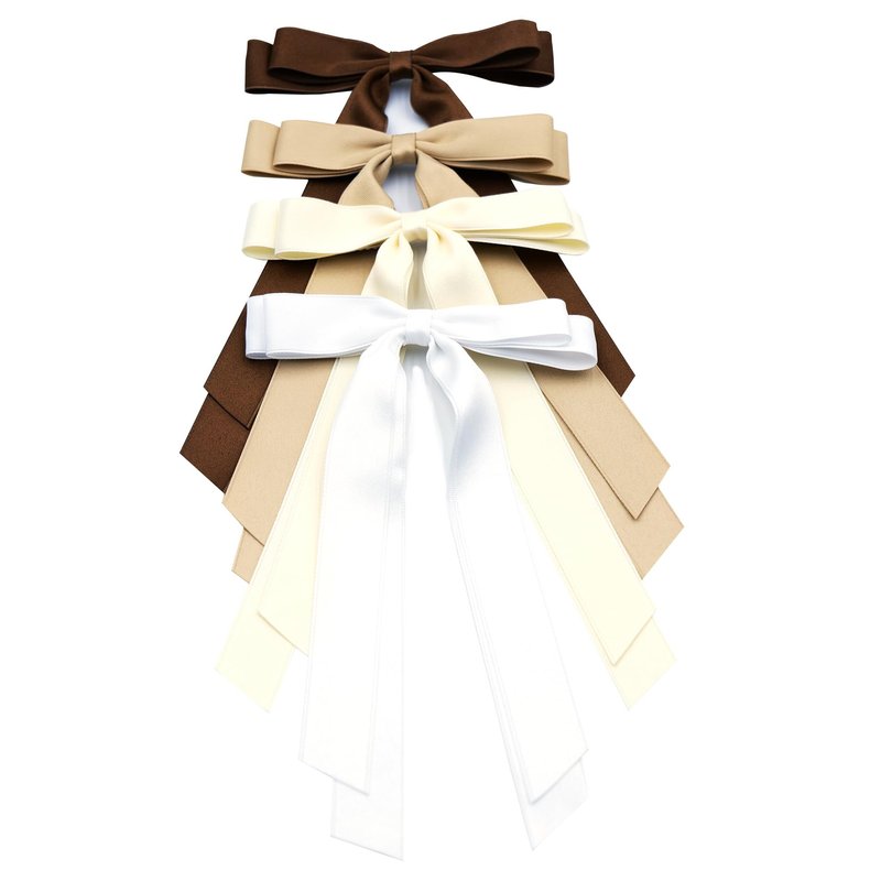 JGQUR Hair Ribbons for Women Long Tail Hair Bow Clips,Coffee Camel Beige White Ribbon for Women's Hair,Barrettes Hair Accessories for Woman Girls Pack of 4