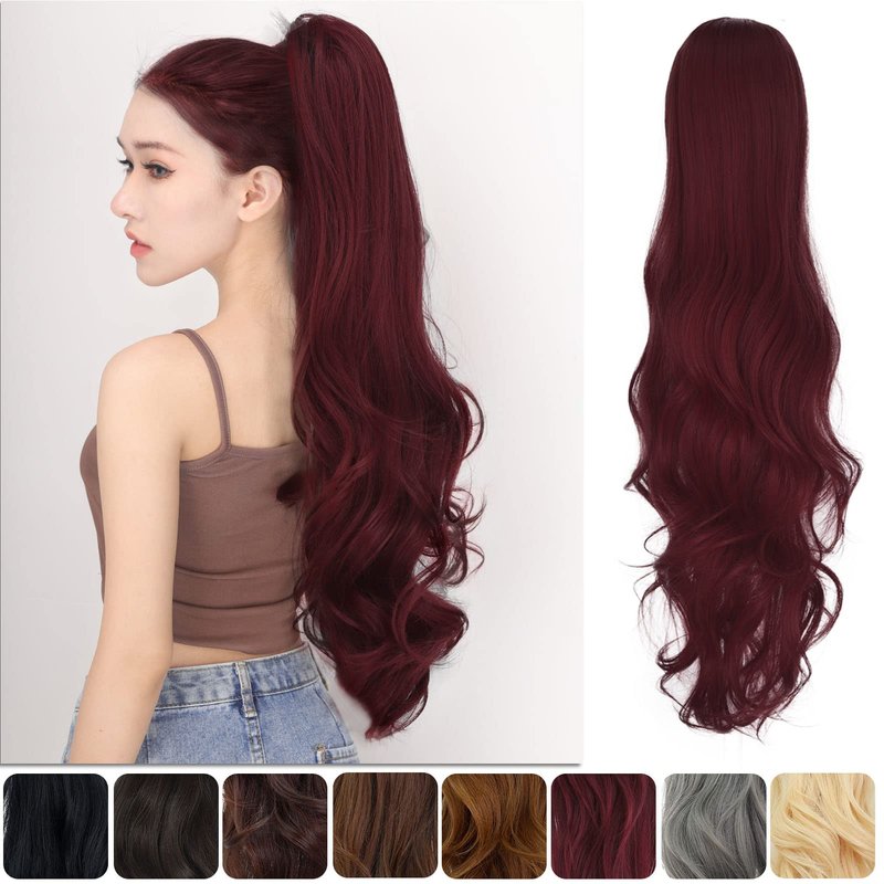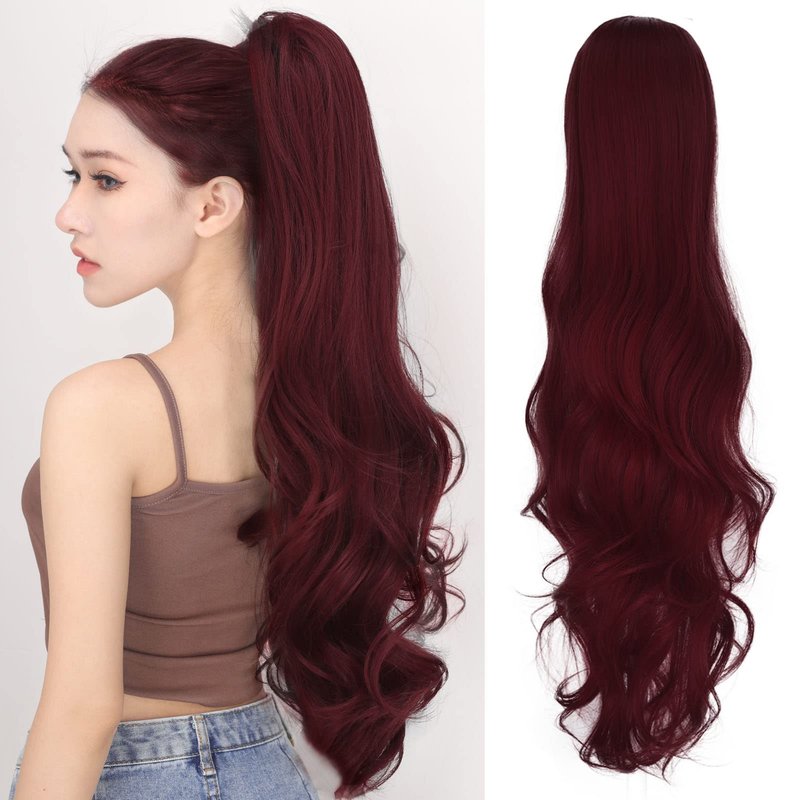 JHZSJF Red ponytail Extension Wavy Drawstring Fak Ponytails,Long Body Clip Hair Extensions Pony Tail Hair Pieces For Women Girls (28 inches, 28"-116-Claret)