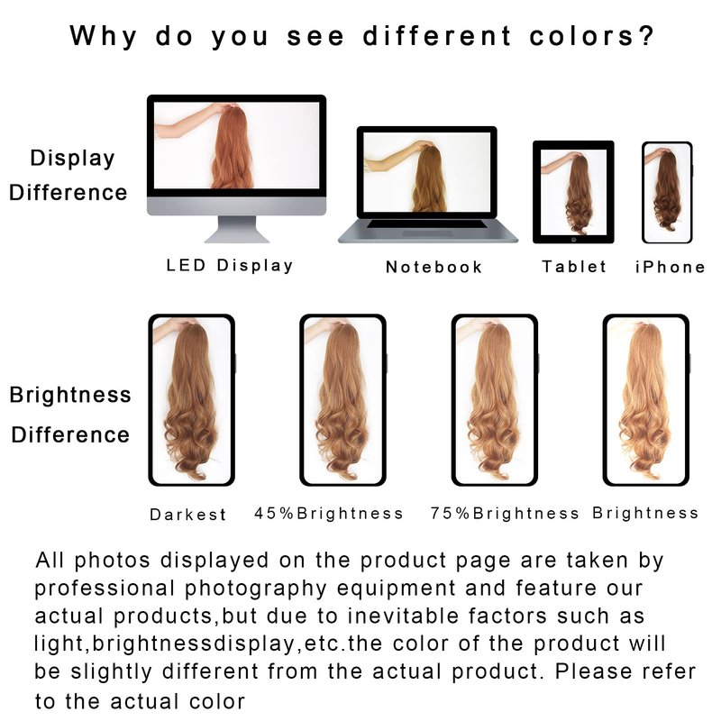 - Warm reminder] Pony tail hair extensions there may be slight hair loss when the product is worn for the first time. Because it is handmade, it is a normal phenomenon. In addition, due to the light, camera functions, and different monitors when taking pictures, there may be a slight color difference between the picture and the real object. On these inevitable issues, we will continue to improve.