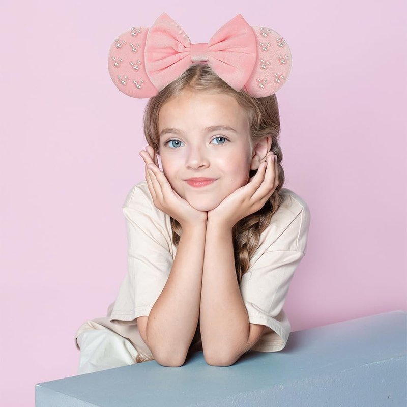 - 【DESIGN】: Classical Mouse Ear combined with pink velvet Bow Hair Band, the mouse ears are decorated with some beads. We also offer different colors and styles of mouse ears headbands.