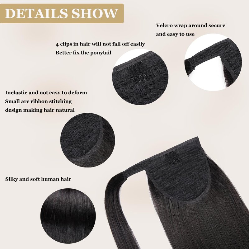 - 【Ponytail Extension Features】You can easy to wear and take off,no damage to your own hair,premium 4 comb clip in inner net,ensure that the human hair ponytail and your own hair are firmly fixed and not falling off.just few seconds and you will get a long thick ponytail like magic.
