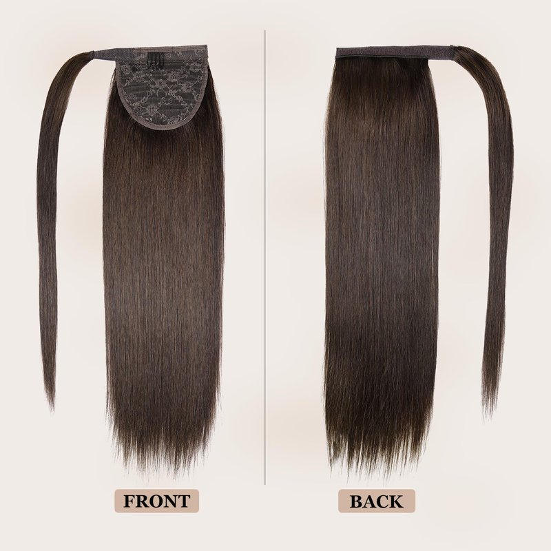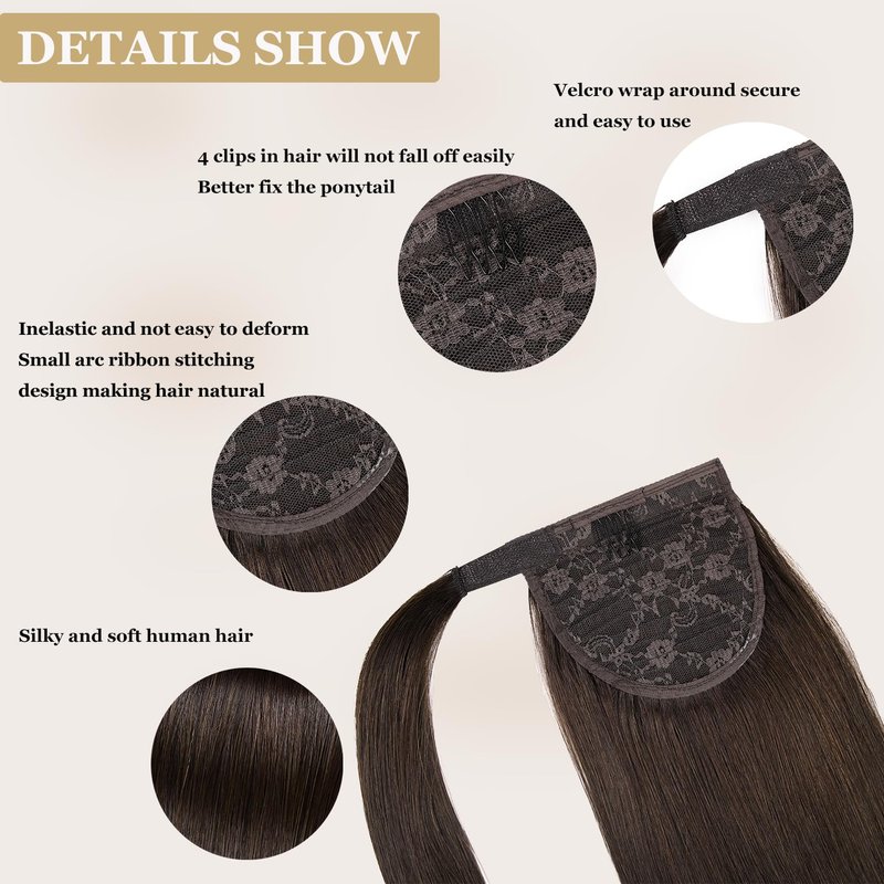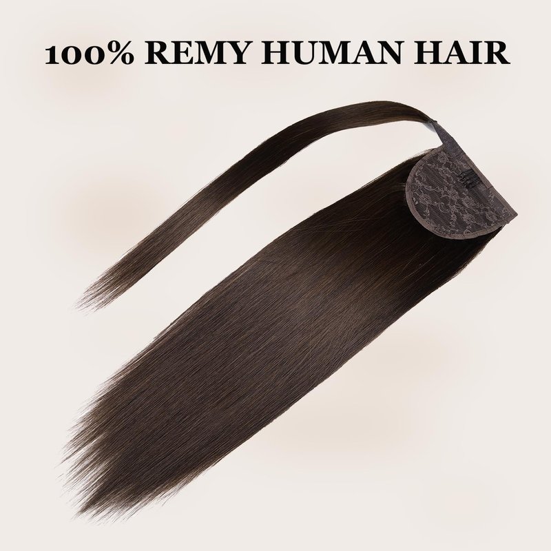 JIAMEISI Ponytail Extension Human Hair Wrap Around Clip in Hair Piece Ponytail Extension Human Hair Straight Ponytail Hair Extensions with Magic Paste 90G 20 Inch #2 Darkest Brown