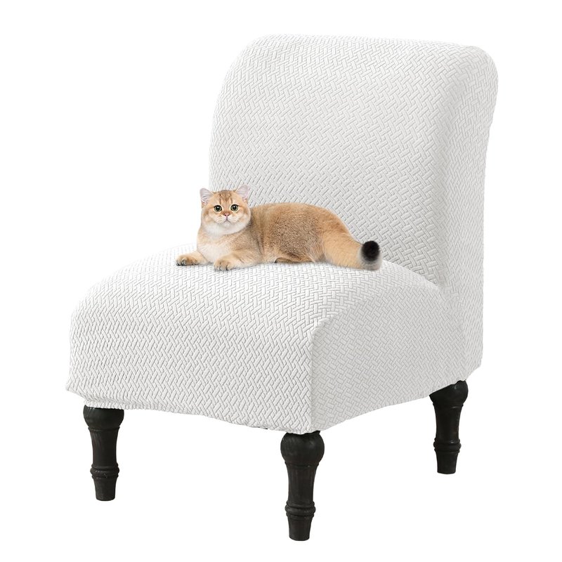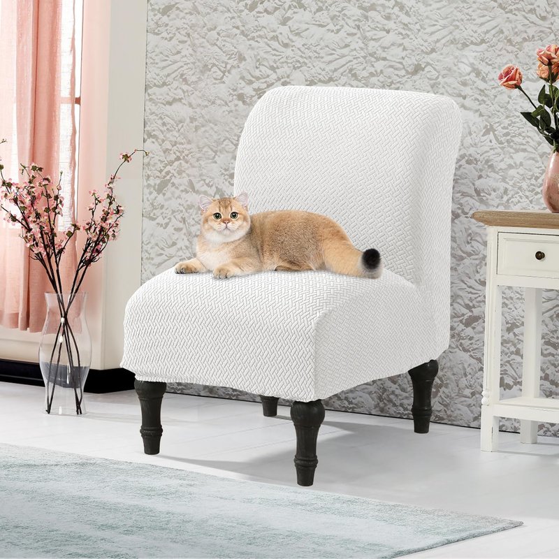 JIAN YA NA Armless Accent Chair Cover, Stretch Armless Chair Slipcover Spandex Armless Chair Covers Slipper Chair Slipcover Furniture Protector Covers for Living Room Bedroom(Knitted, White)