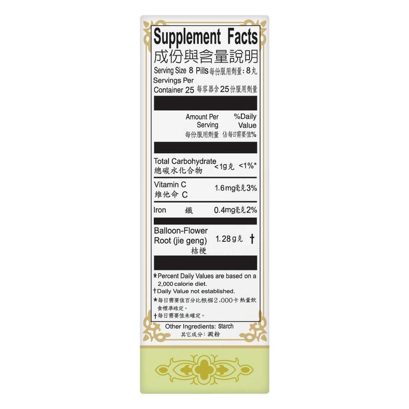 Jie Geng Wan Herbal Supplement (Platycodon Ballon Flower) (200 Pills) (1 Bottle)