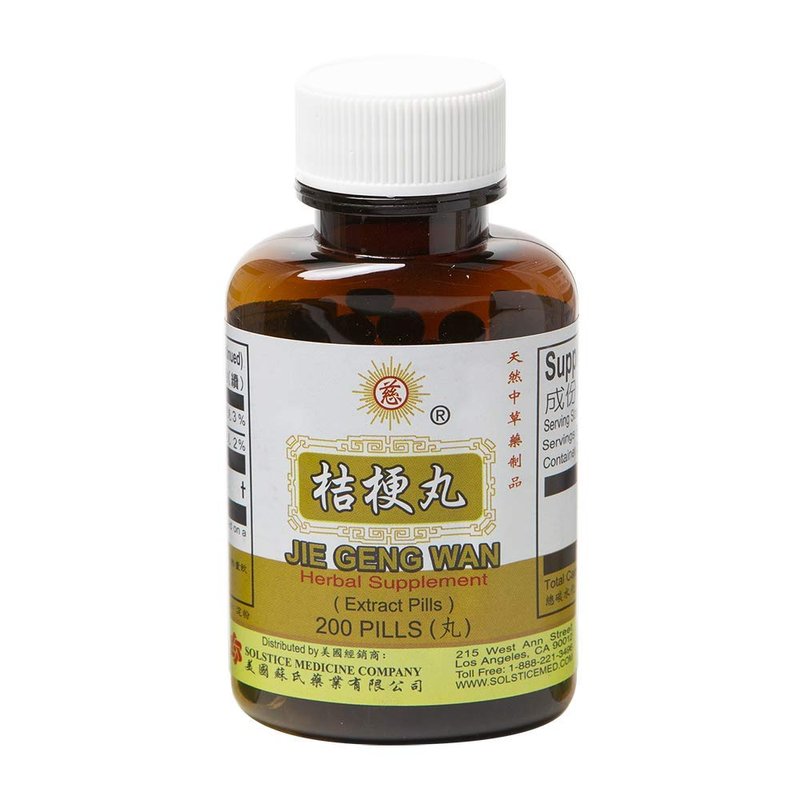 Jie Geng Wan is a popular natural herbal supplement that supports the health of the throat and bronchial passages. It is effective in supporting the upper respiratory system and sinuses.