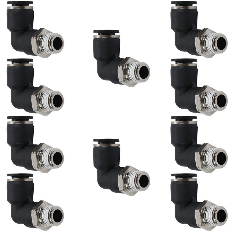 Jienk 10PCS Pneumatic Male Elbow 3/8" Tube OD x 1/4" NPT Thread Push to Connect Air Fittings,90 Degree Quick Connector for Air Compressor Air Horn Air Bag