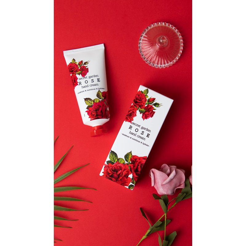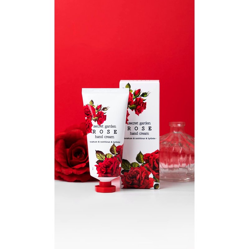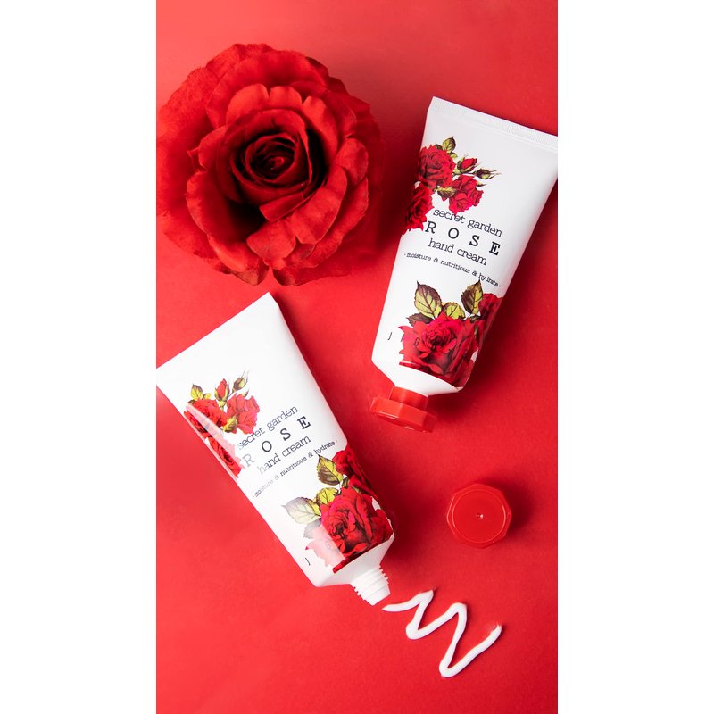 JIGOTT Secret Garden Rose Hand Cream - Korean Moisturizing Hand Lotion For Dry Hands Travel Size (Rose Scent, 3.38 Fl Oz)