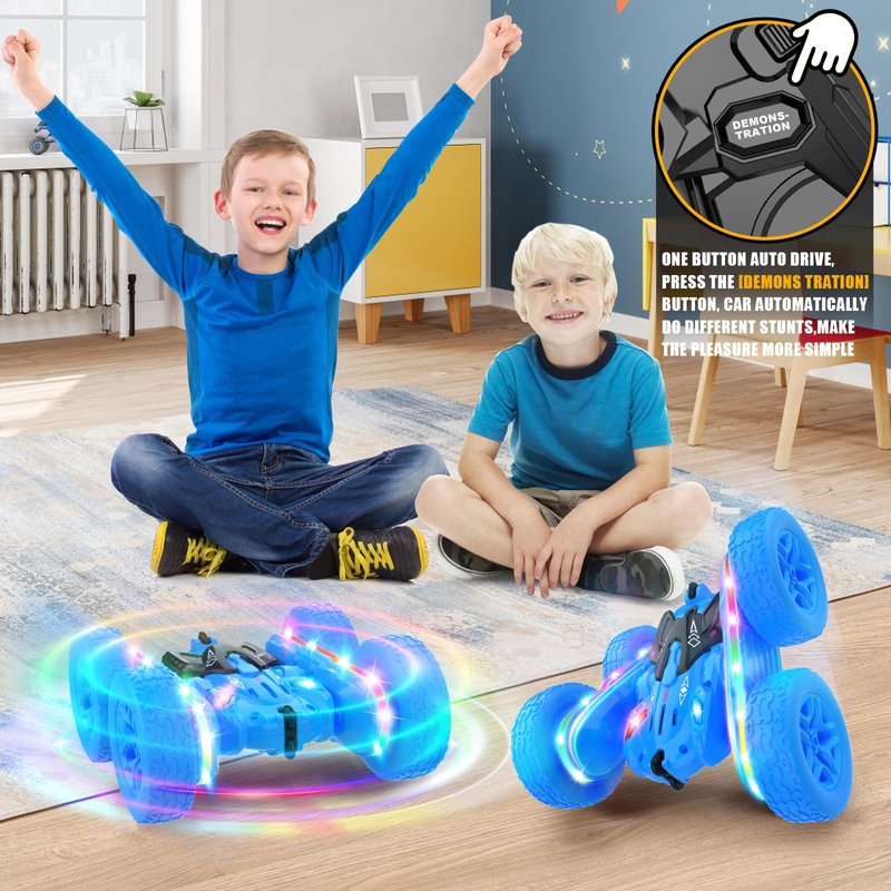 Jimdella Remote Control Car,RC Cars with Sides Light Strip and Headlights,Double Sided 360 Flips Rotating RC Stunt Car,2.4Ghz All Terrain Toys for Ages 4-6 Kids Toy for Boys Girls Birthday Gift(Blue)