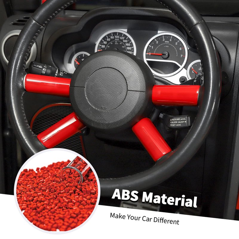 Jimen Compatible with Jeep Wrangler JK JKU 2007-2010, 4PCS Car Steering Wheel Overlay Cover Interior Trim Accessories (Red)