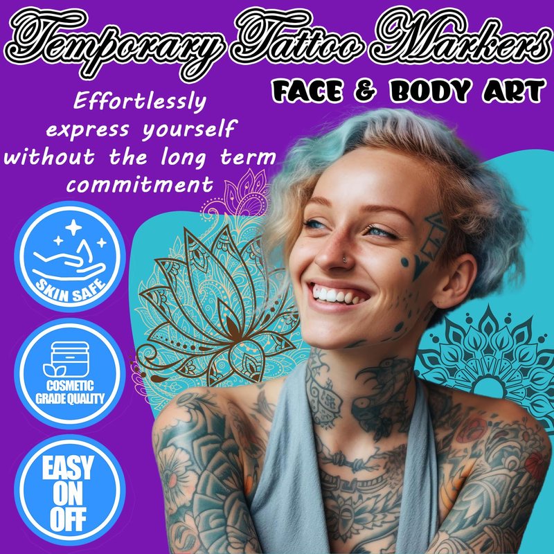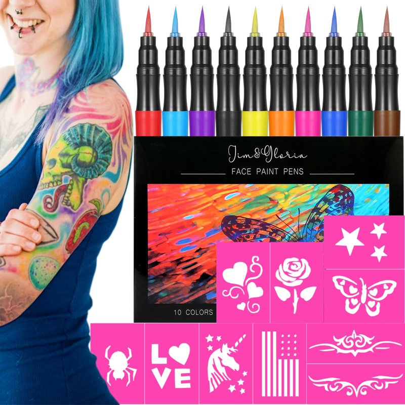 Jim&Gloria Temporary Tattoo Markers For Skin Fake Tattoo Pens Washable Face Paint Body Painting Art Gifts for Girls Boys Adults Teen Trendy Stuff, Trending Gifts For Tweens Teenage or Kids