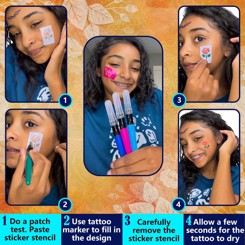 - PERFECT FOR MULTI-PURPOSE USE - Our temporary tattoo drawing kit is kawaii stuff for birthday party gift basket, Fun things for teen boys and girls, Theme party supplies, Christmas stocking stuffers, New Year party stuff, Tattoo art paints pen for adults and kids at carnivals, Makeup bag for cosplay, pair with your rave outfits, accessories for baseball softball or face paint for football games, clown make up. Fake tattoo set supplies for role plays, musical, festivals and clubbing.
