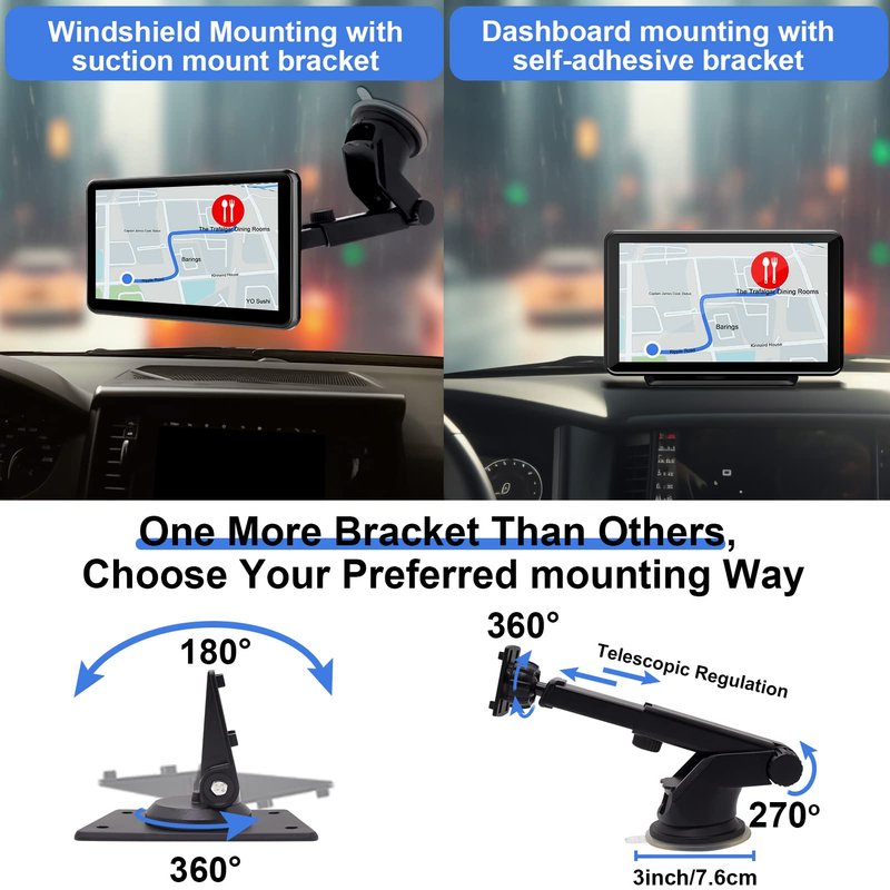 - Easy Install, Plug & Play: Install and remove this apple carplay dash mount easily with a self-adhesive bracket and a suction cup bracket. With one more bracket than others, you can choose to install the wireless apple carplay display in any ideal place in your car. Upgrade your car stereo in 10 minutes without any installation expertise.