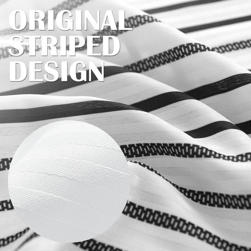 - 🛁 Modern Dual-Stripe Design: Dive into contemporary aesthetics with our 70x72-inch black and white curtain. Unique black stripes on subtly striped woven fabric bring a refreshing touch to bathrooms.