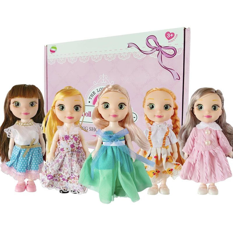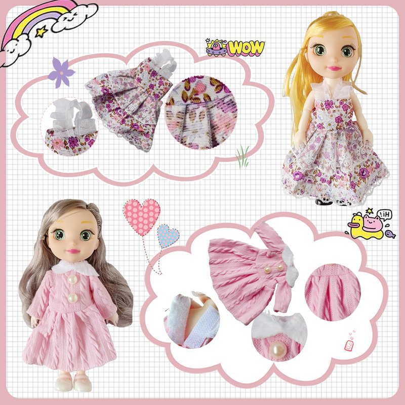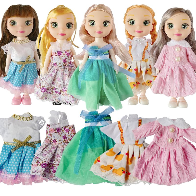 JING SHOW BUSSINESS 5 Sets Doll Clothes for 6 inch Doll ,Include 5 Pieces Girl Small Dolls, 5 Sets Handmade Doll Clothes and 5 Pairs of Doll Shoes