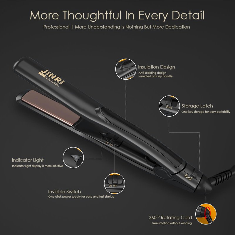 JINRI 0.8 Inch Hair Straightener Titanium Plate Medium-Sized Flat Iron,Perfect Travel Size Hair Straightener Dual Voltage