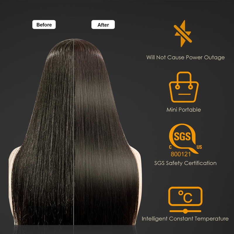 Step 1: Please use a regular comb to detangle your hair. It will help the flat iron to straightening your hair a lot easier. Step 2: Separate 2-inch sections of hair. Make hair fit to iron's straightening plates. Not too tight to prevent pulling the hair. Step 3: It would be better if you hold the hair tail and slide all the way down slowly and gently, the ends require less heat. Step 4: Simply release pressure and allow the hair to gently slip out from the plate. To create flips or curls, separate a 1-inch section of hairuse round edge of the iron's straightening plates to curl ends out or under