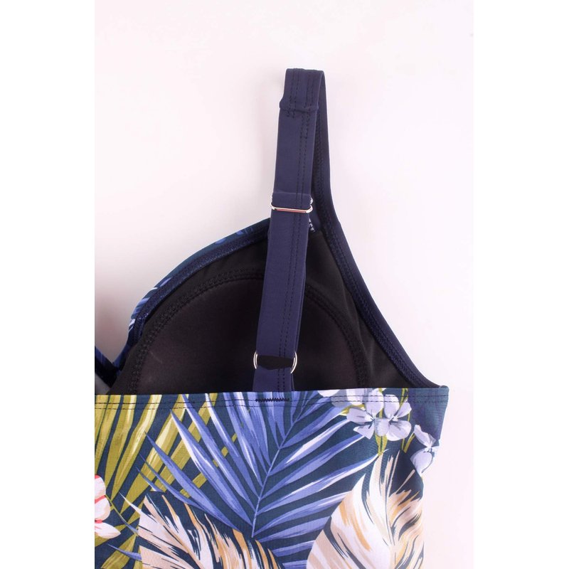 - U neck line with adjustable wide shoulder straps, wireless soft padding which makes comfort and support. A line silhouette and multiple layered give you good coverage and tummy control.