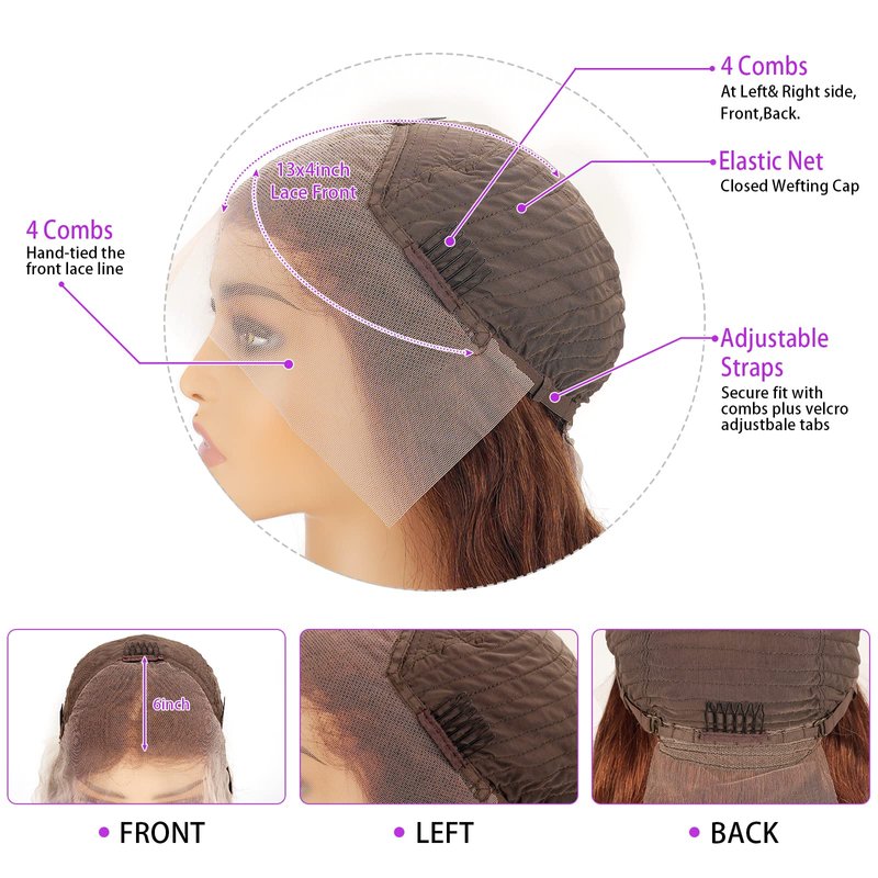 JISHUN Chocolate 13x4 Auburn Brown Body Wave Lace Front Wigs Human Hair Wigs HD Transparent Lace Front Wig glueless wigs 180% Density Brown Colored Glueless 10A Curly Human Hair Wigs