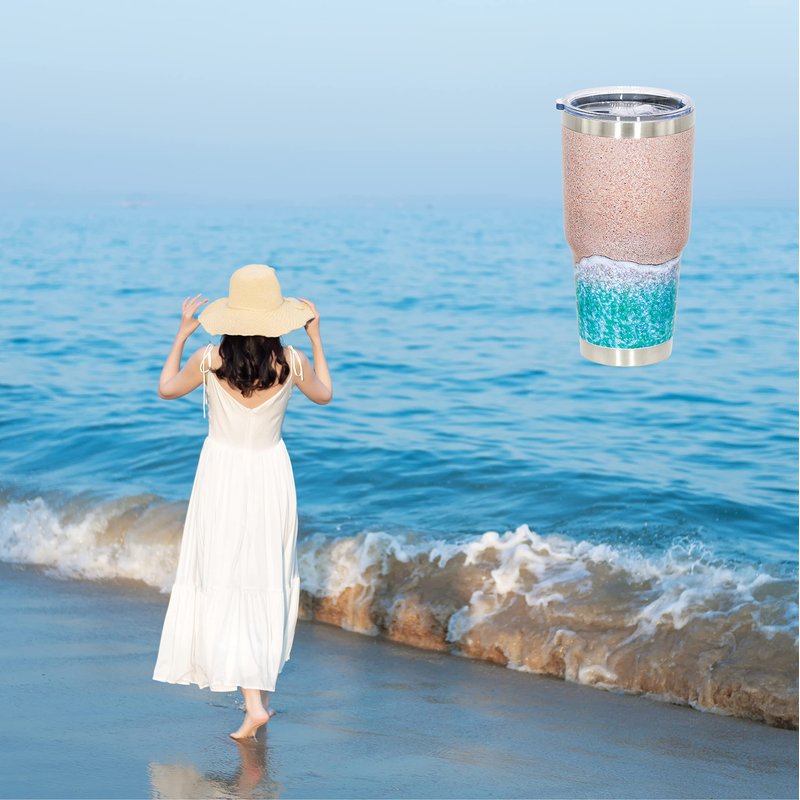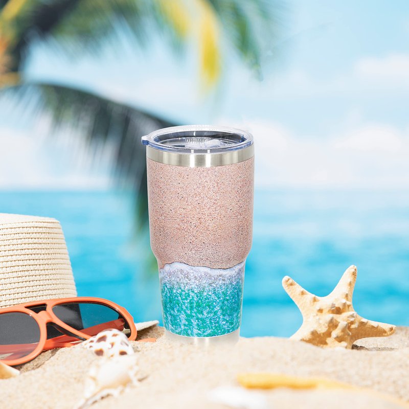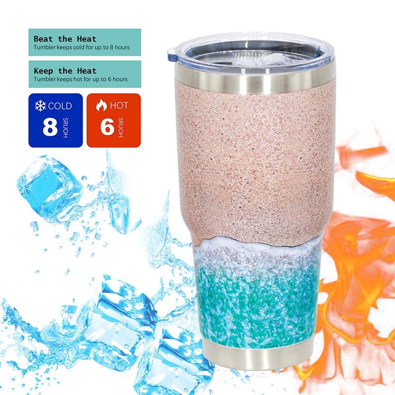 - ❤ Vacuum insulated & Temperature retention: the beach tumbler mug works for hot beverages and Ice cold Drinks,as wine tumbler sports cup or as a travel mug 。 Beach mug will stay as hot or cold as long as possible